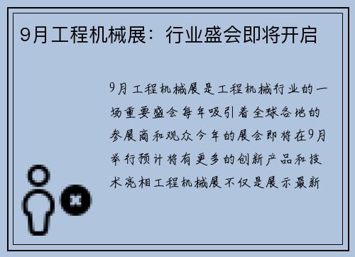 9月工程机械展是工程机械行业的一场重要盛会,每年吸引着全球各地的参展商和观众。今年的展会即将在9月举行,预计将有更多的创新产品和技术亮相。工程机械展不仅是展示最新产品和技术的平台,也是行业交流和合作的重要场所。以下将从多个方面对即将到来的9月工程机械展进行详细阐述。
